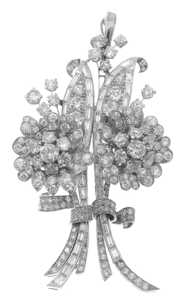 The stylised floral double bouquet set with old European and single cut diamonds totalling 17.72cts to a modern bale, in 18ct white gold, independent valuation available.