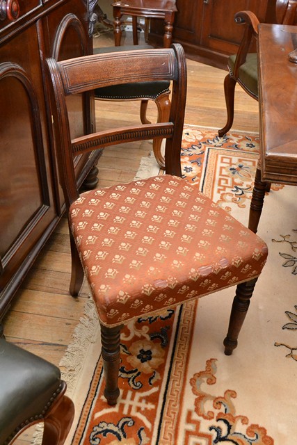 A HARLEQUIN SET OF ELEVEN REGENCY MAHOGANY FRAMED DINING CHAIRS