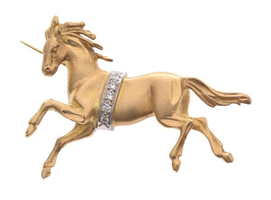 The finely detailed horse with diamond detail in matt finish, in 18ct gold.