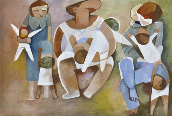 CHARLES BLACKMAN (BORN 1928) Schoolgirls circa 1960 oil on laminated paper