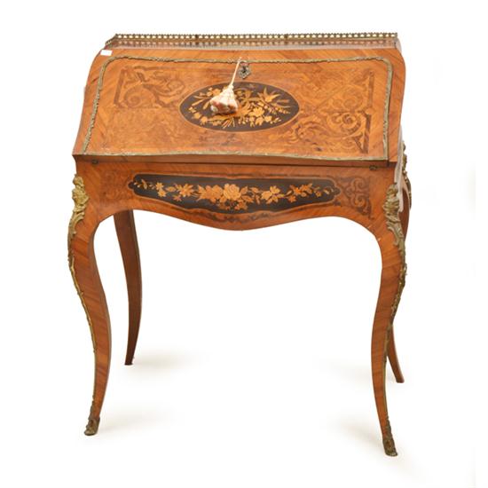 A LOUIS XV STYLE GILT METAL MOUNTED KINGWOOD AND MARQUETRY BUREAU DE DAME