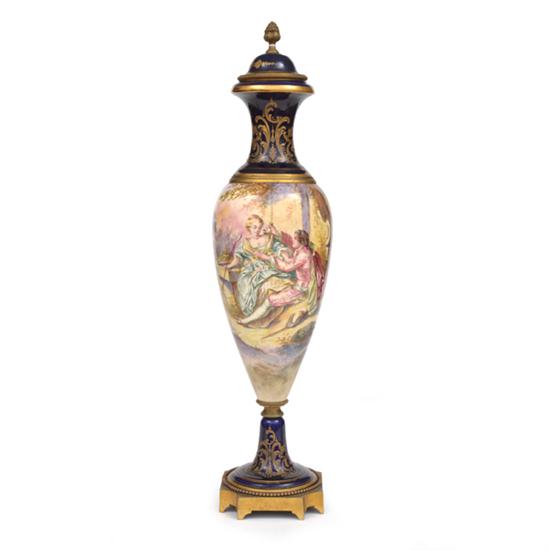 A SEVRES STYLE GILT METAL MOUNTED PORCELAIN VASE AND COVER, SIGNED A.GRISARD