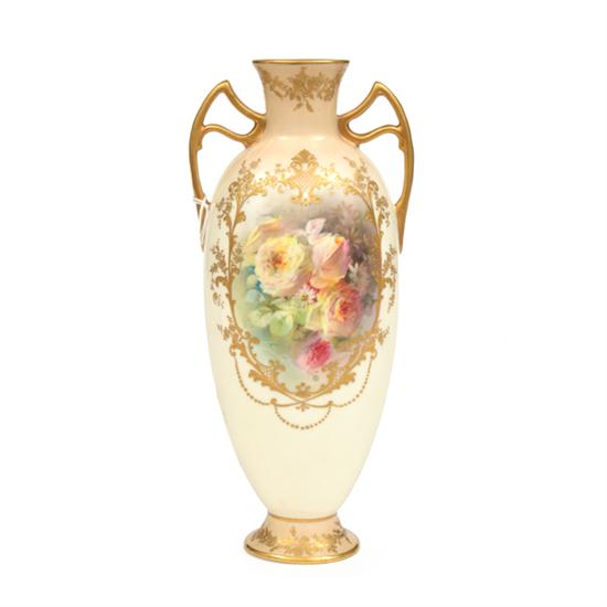 A ROYAL DOULTON PAINTED AND GILT PORCELAIN VASE, SIGNED CURNOCK