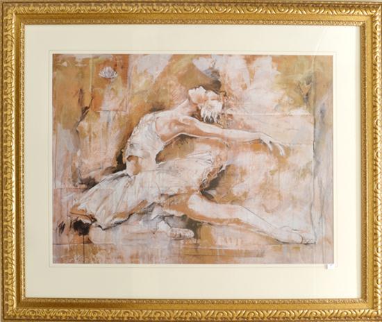 A DECORATIVE ARTWORK DEPICTING A BALLERINA IN AN ORNATE FRAME