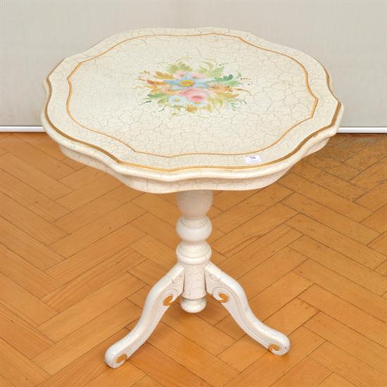 A PAINTED AND GILT TRIPOD BASED OCCASIONAL TABLE