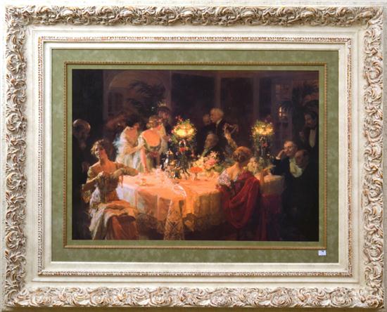 A DECORATIVE ARTWORK DEPICTING A BANQUET, IN AN ORNATE FRAME