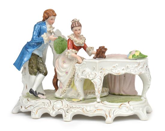 A CONTINENTAL PORCELAIN FIGURE GROUP OF A PLAYING A PIANO