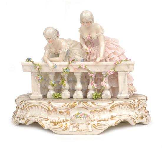 A CONTINENTAL PORCELAIN LACE FIGURE GROUP
