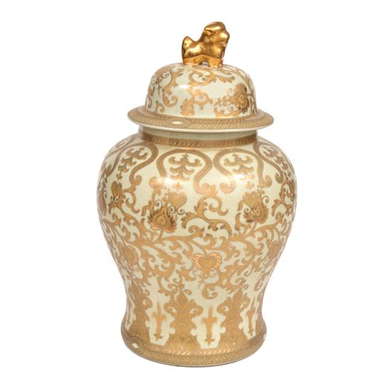 A GUILDED CHINESE PORCELAIN LIDDED GINGER JAR