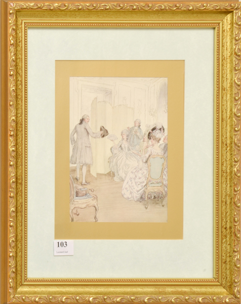 A DECORATIVE FRAMED PRINT OF A PARLOUR SCENE