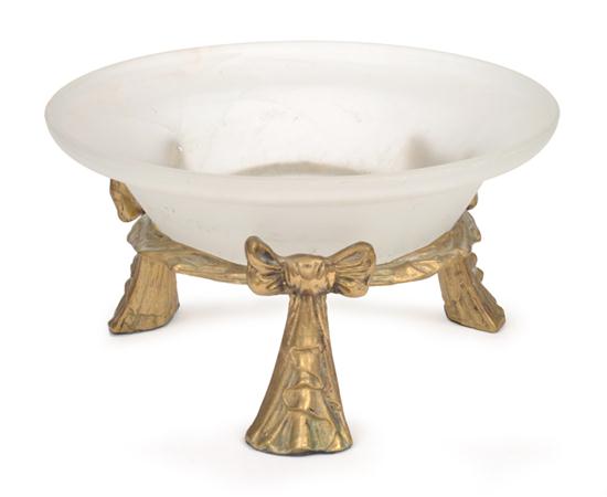 A FROSTED GLASS BOWL WITH A GILT METAL BASE
