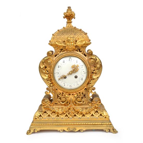 A FINE QUALITY FRENCH GILT METAL CASED MANTEL CLOCK, BELL STRIKING, PULL REPEAT, WITH AN ANCHOR ESCAPEMENT