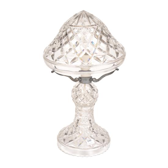 A LARGE DIAMOND CUT CRYSTAL LAMP AND SHADE