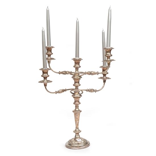 A VICTORIAN SILVER PLATE FOUR BRANCH CANDELABRA
