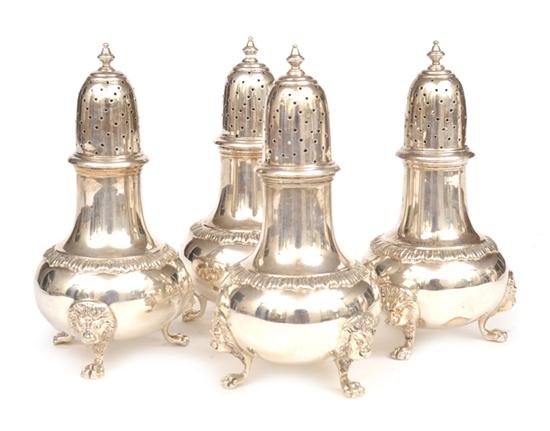 SET OF FOUR EDWARD VII STERLING SILVER PEPPERETTES, MAKER'S MARK PIERCE & SONS, LONDON 1908