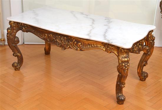 A GILT WOOD FRAMED MARBLE TOP COFFEE TABLE