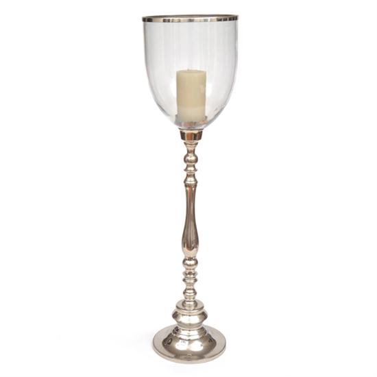 A CHROME CANDLE HOLDER WITH GLASS STORM SHADE