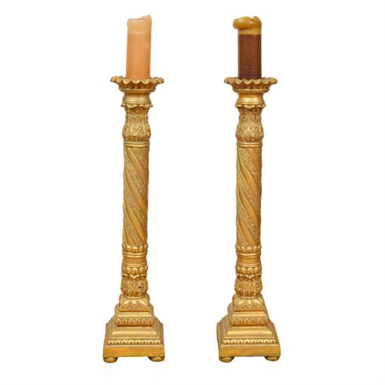 A PAIR OF CARVED GILT WOOD COLUMNAR TORCHERES