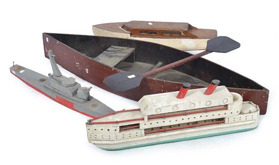 FOUR DEPRESSION STYLE WOODEN SHIP MODELS, LARGEST 118CM LONG (4)