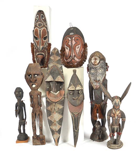 COLLECTION OF PAPUA NEW GUINEAN SCULPTURES AND MASKS (A LOT)