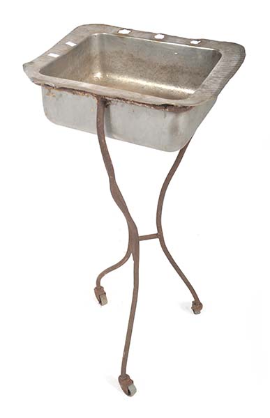 ELEVATED SINK ON WROUGHT IRON TRIPOD BASE, 100CM HIGH X 45CM WIDE X 39CM DEEP