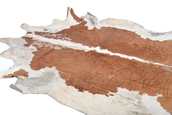 EXTREMELY LARGE BROWN AND WHITE COW HIDE RUG, 245CM LONG X 240CM WIDE
