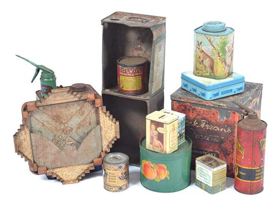 PENNANT HOUSEHOLD KEROSENE TIN; PEEK FREAN'S BISCUIT TIN; AND EIGHT OTHER PRODUCT TINS (10)