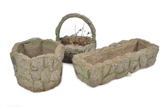 THREE LARGE GRANITE AND CONCRETE MOSAIC PLANTERS, BELIEVED TO BE 1930S FROM BALLARAT, LARGEST 22CM HIGH X 84CM WIDE X 30CM DEEP (3)