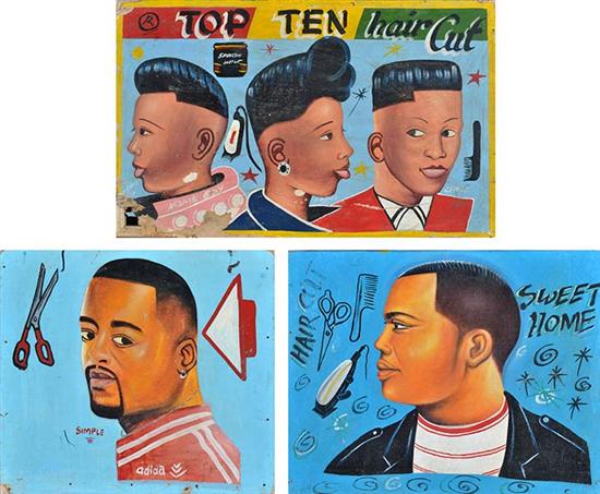 A GROUP OF FOUR JAMAICAN HAIR CUT ADVERTISEMENTS, HAND-PAINTED