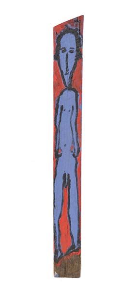DECORATIVELY PAINTED MURRAY WALKER TIMBER PANEL, SIGNED VERSO, DATED 2005, 89CM LONG X 10CM WIDE