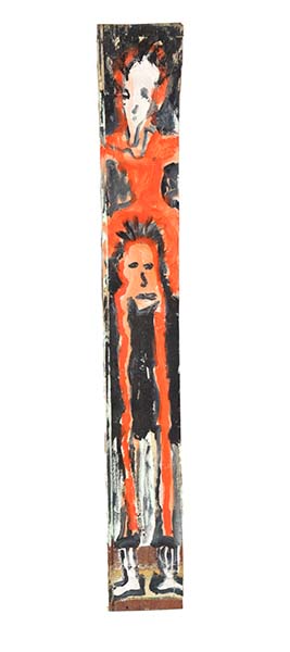 DECORATIVELY PAINTED MURRAY WALKER TIMBER PANEL, SIGNED VERSO, DATED 2006, 93CM LONG X 12CM WIDE