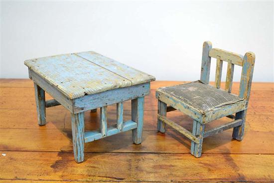 A MINIATURE DOLL'S TABLE AND CHAIR