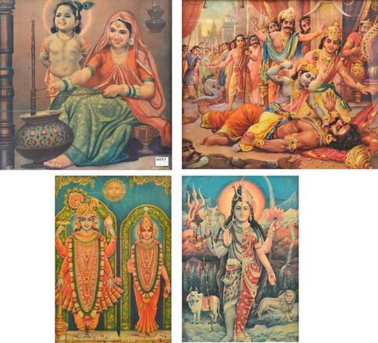 A GROUP OF FOUR INDIAN RELIGIOUS PRINTS, FRAMED (4)