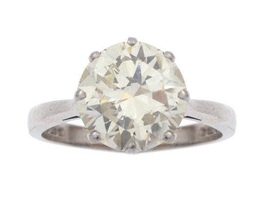 The round brilliant cut diamond weighing 2.90cts, in an eight claw coronet setting, in 18ct white gold, independent valuation available, ring size M-N.