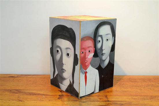 AFTER ZHANG XIAOGANG A painted cube depicting family portraits