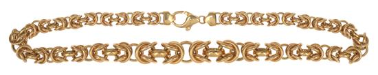 Comprising graduating fancy interlocking links in 18ct gold, total weight 64.05gms, total length 460mm.