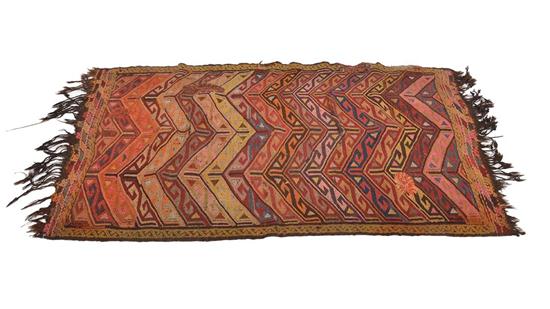 KILIM IN WARM TONES OF PINK AND RED, 160CM LONG X 78CM WIDE