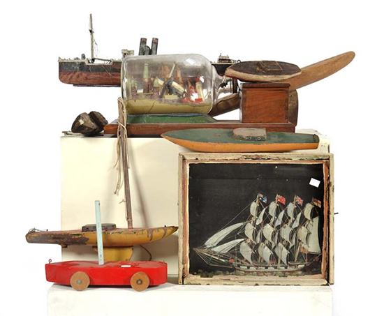COLLECTION OF NAUTICAL SHIP MODELS INCLUDING ONE DIORAMA; A PAINTING; AND A MECHANICAL SHIP IN A BOTTLE (A/F); AND OTHERS (A LOT)