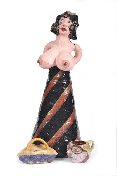 THREE LORRAINE JENYNS (BORN 1945) PIECES INCLUDING FIGURE JUG AND BOWL, LARGEST 54CM HIGH (3)