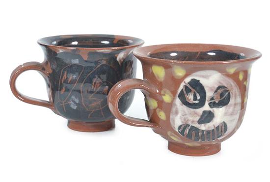 TWO MURRAY WALKER (BORN 1937) MUGS, BOTH SIGNED DATED TO BASE, LARGEST 10.5CM DIAMETER (2)