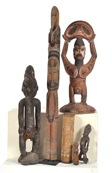 COLLECTION OF PAPUA NEW GUINEAN ARTIFACTS INCLUDING THREE LARGE WOODEN WORKS (A LOT)
