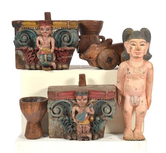 COLLECTION OF INDIAN ARTIFACTS INCLUDING A WOODEN CAR (A LOT)