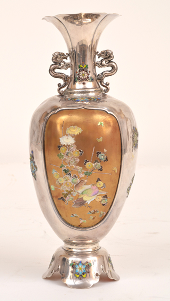 With gold lacquered cartouches, inlaid with mother of pearl and further cloisonne motifs