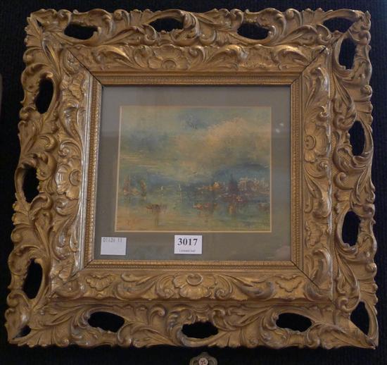SIGNED GULLINI, BOATS AT THE HARBOUR, OIL ON BOARD, 12.5 X 14CM