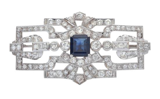 AN ART DECO SAPPHIRE AND DIAMOND BROOCH