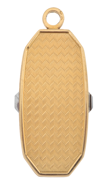 The octagonal engine turned case enclosing two blades and scissors, in 18ct gold, French hallmarks.