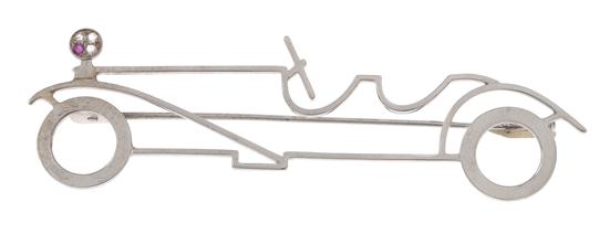The stylised open roadster design, with ruby and diamond detail, in 14ct white gold.