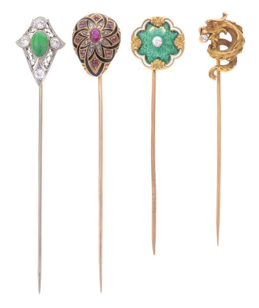 From the Art Deco and Art Nouveau periods, including jade, enamel and ruby, all with diamond detail.