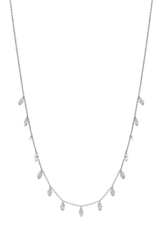 The necklace suspending fourteen marquise cut diamonds totalling 3.50cts and the bracelet suspending eleven round brilliant cut diamonds totalling 0.825cts, on fine trace chains, in 14ct white gold.