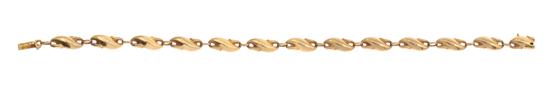 Comprising a series of fancy 'S' shaped links in 18ct gold, total length 200mm.